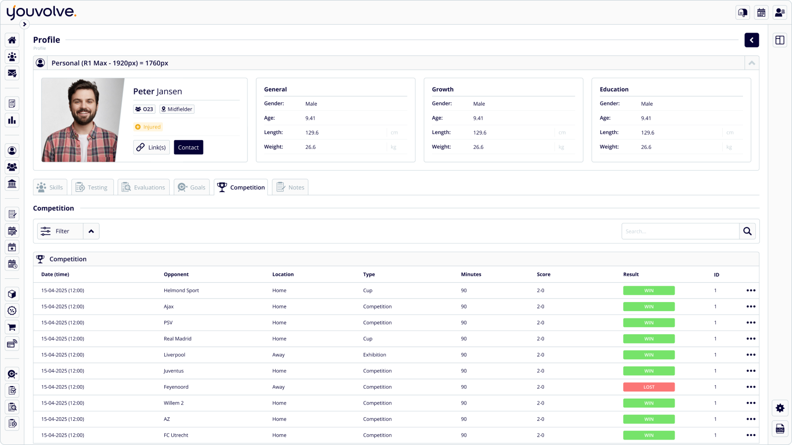 Je ziet direct doelen, kennis, ervaring, resultaten en ontwikkelpunten per persoon.