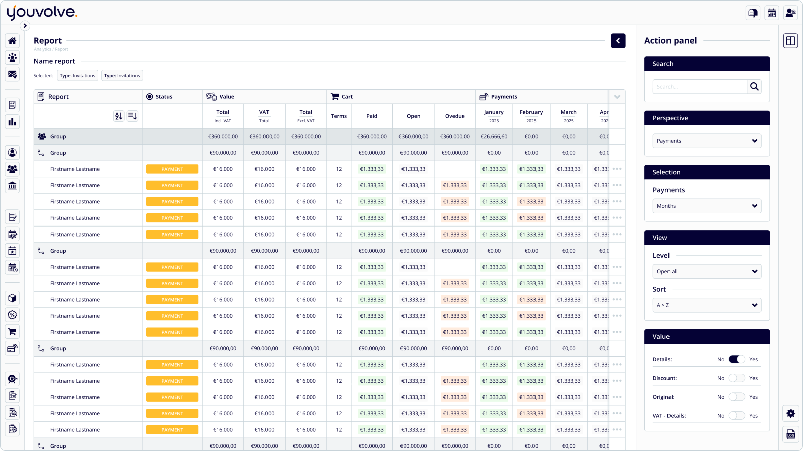 Met de module Rapportages krijg je een actueel overzicht van gebruikers- en groepsdata, zoals inschrijvingen, betalingen, vragenlijsten, resultaten en persoonlijke ontwikkeling. Zo beschik je over de juiste informatie van individuen, groepen en organisaties. Bovendien helpen rapportages om gericht bij te sturen, beslissingen te onderbouwen en ontwikkeling te volgen en optimaliseren.